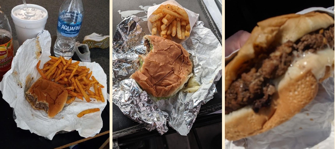 Ollie's Trolley specializes in burgers, including cheeseburgers, chili burgers, and carts hot dogs. They also offer chicken and fish options. Meals are affordable, with an average price of $1.44.